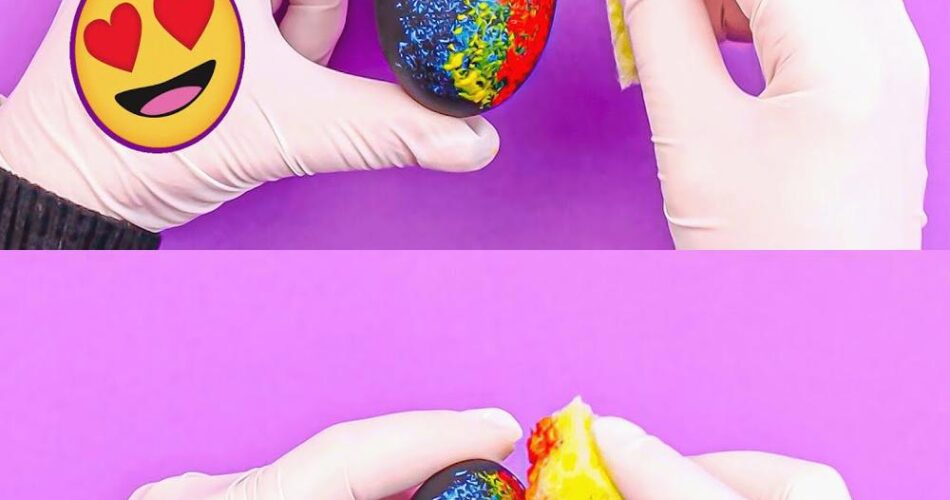 - Essayez la technique du trempage : plongez l’œuf dans la peinture pour obtenir un effet marbré.