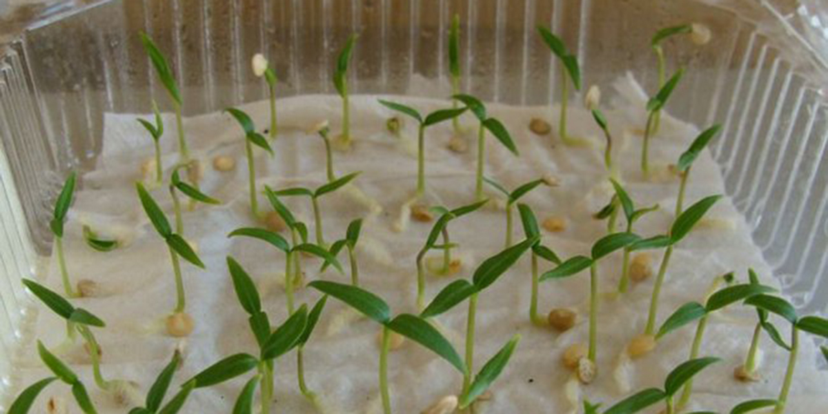 3. Après cela, versez la solution de chlorella, replacez un morceau de coton avec les graines dans le récipient et placez-le sous la lampe ou dans un endroit chaud. Au bout d’un jour, les graines commenceront déjà à germer.