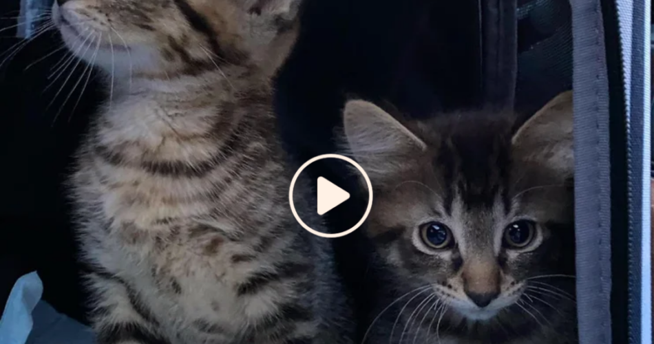 L’un des chatons était plus petit et frêle, et n’avait pas beaucoup d’appétit. Son frère est resté à ses côtés pour le réconforter. Géraldine a contacté sa sauvegarde locale, Chats Orphelins Montréal, et a confié les chatons en toute sécurité à leur garde.