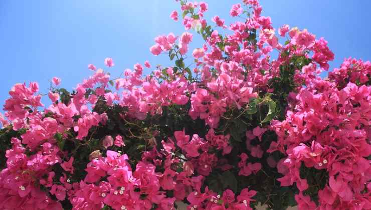 Bouganvillea fait partie de la grande famille des Nyctaginaceae . En Italie c’est un véritable symbole, à tel point qu’il embellit jardins et terrasses de ses belles couleurs. La période de floraison maximale est en été jusqu’à l’automne. Pour ceux qui aiment les fleurs, c’est certainement la plante parfaite pour donner une touche de lumière et de couleur à l’environnement. Ses fleurs, pour les non-initiés, sont de petites bractées colorées qui embrassent les fleurs centrales de la nuance crème ou jaune.