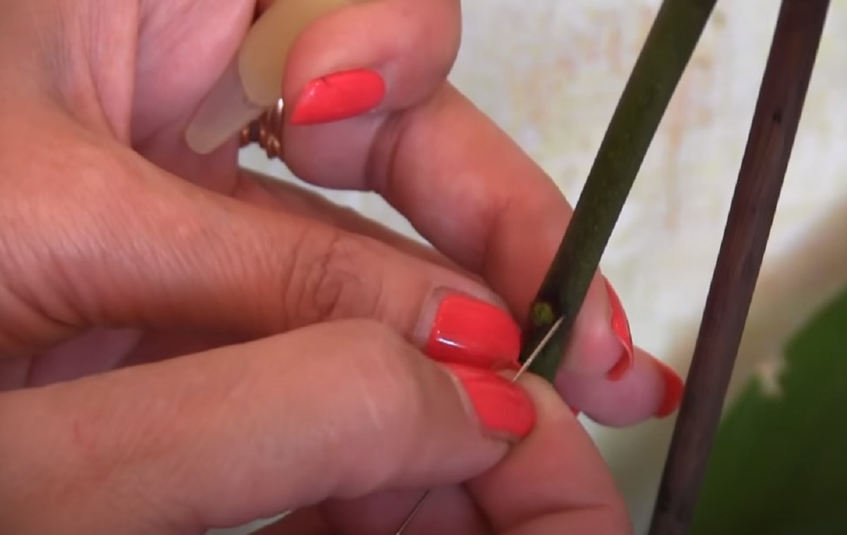 Il existe une pâte magique à la cytokinine, qui est utilisée pour multiplier les orchidées. Mais il convient également pour stimuler la refloraison. Après vous être désinfecté les mains et une aiguille, retirez le tartre d’un bourgeon dormant à l’aide d’une aiguille. Ensuite, grattez-le un peu avec l’aiguille et recouvrez-le de pâte de cytokinine.