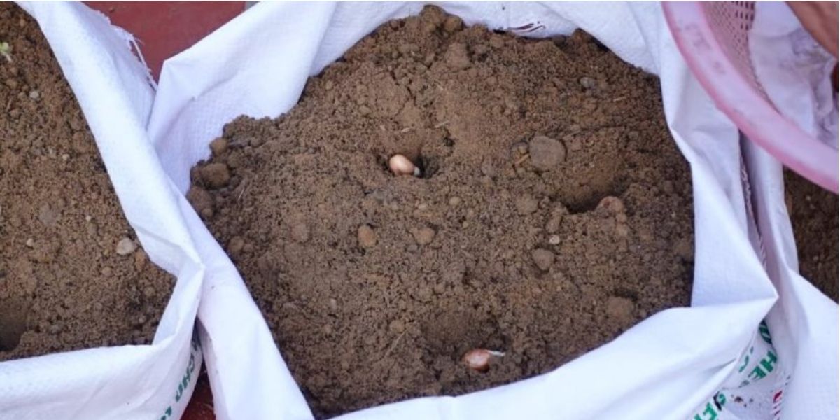 Même dans des sacs, vous pouvez faire pousser beaucoup de cacahuètes.