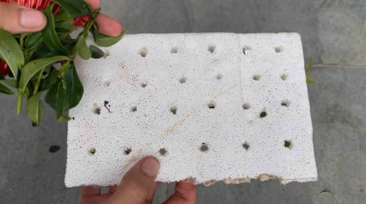Préparez les boutures. Faites-leur des trous dans du polystyrène.