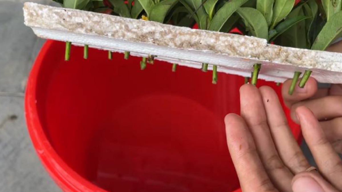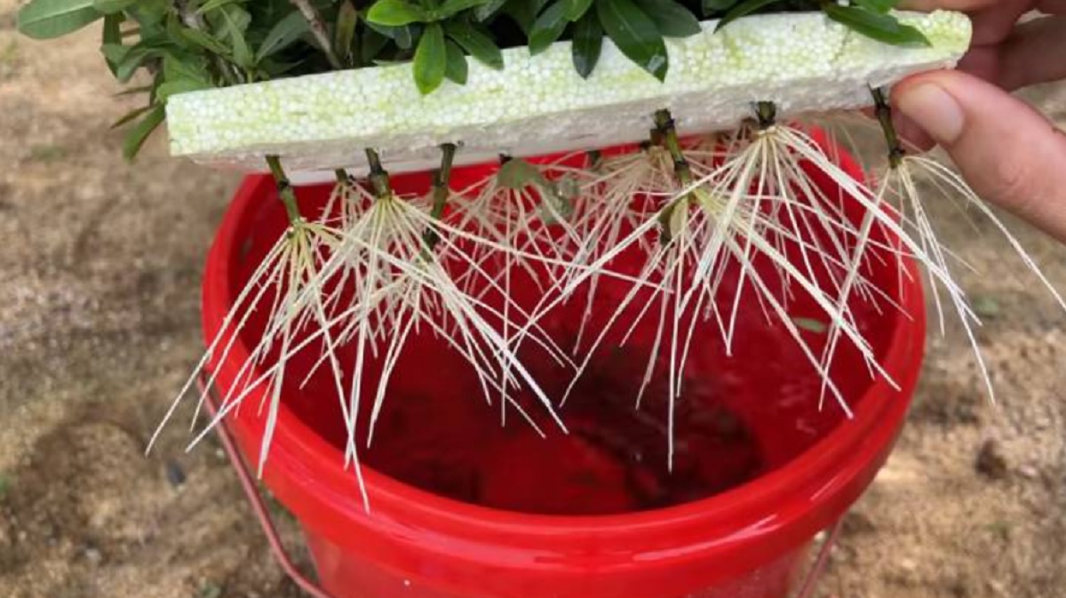 L’enracinement des boutures dans l’eau peut être très simple et efficace. Les boutures flotteront à sa surface, sans support supplémentaire. Pour ce faire, vous n’avez besoin que d’un morceau de polystyrène expansé.