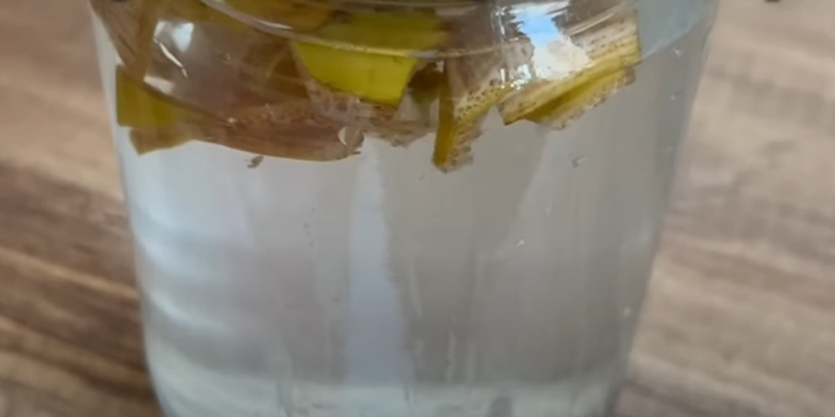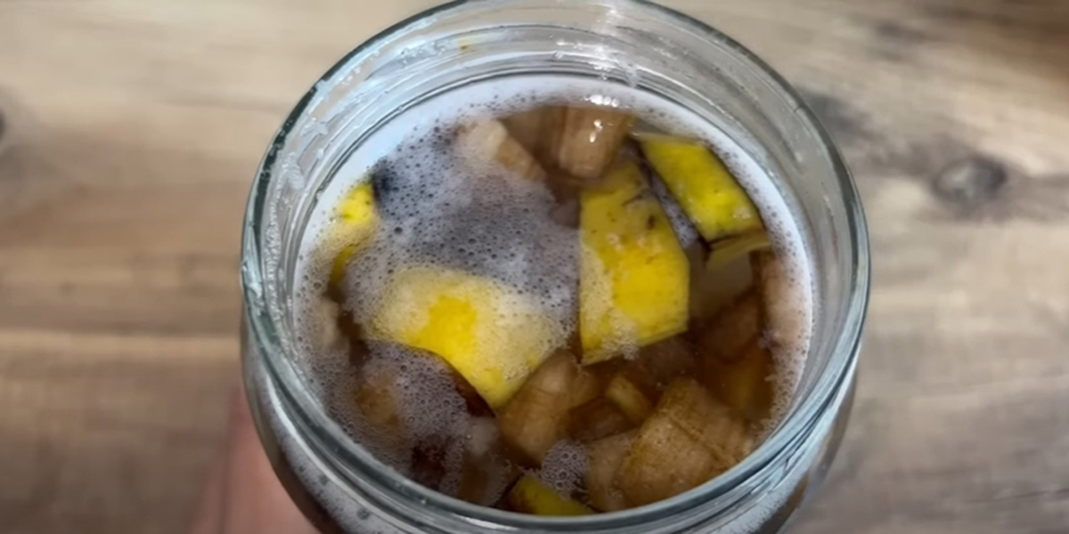 1. Prenez une peau de banane et coupez-la en petits morceaux. Mettez-le dans un bocal et couvrez d’un litre d’eau tiède.
