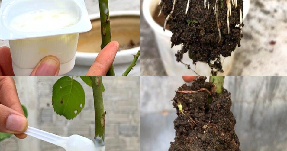Il suffit d’un peu de yaourt pour faire pousser des racines de roses à partir de la tige