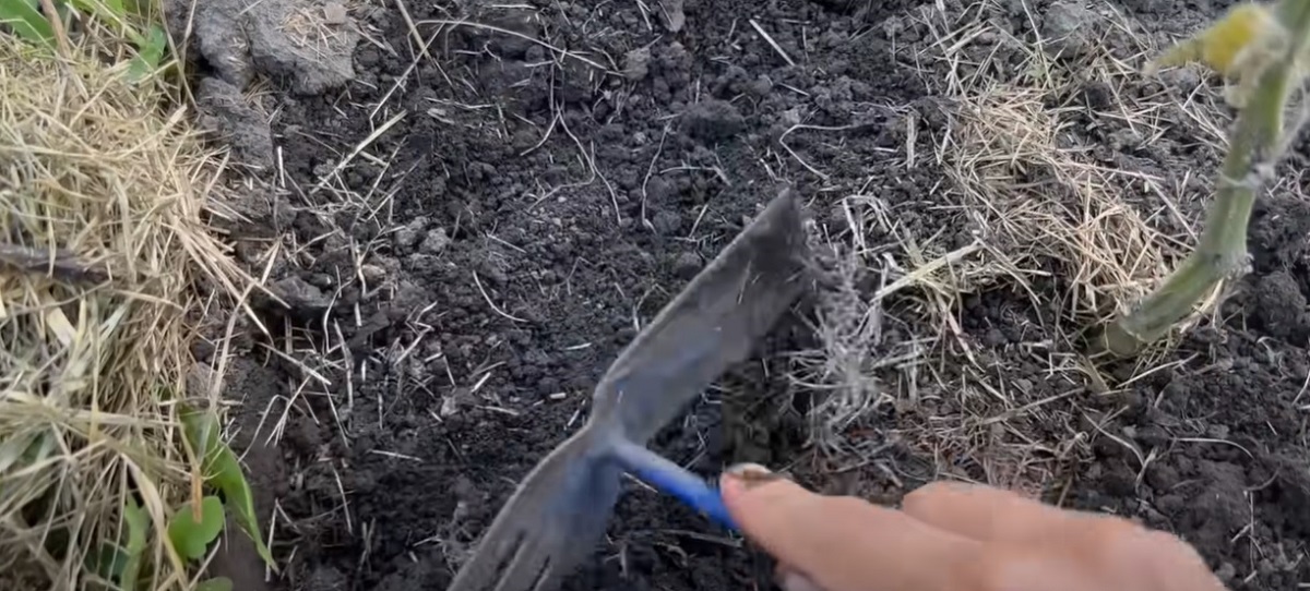 5.Săpați un șanț circular cu adâncimea de câțiva centimetri în jurul tufei de castraveți, la distanța de aproximativ 25 cm de tulpina ei, ca să nu-i lezați rădăcinile.