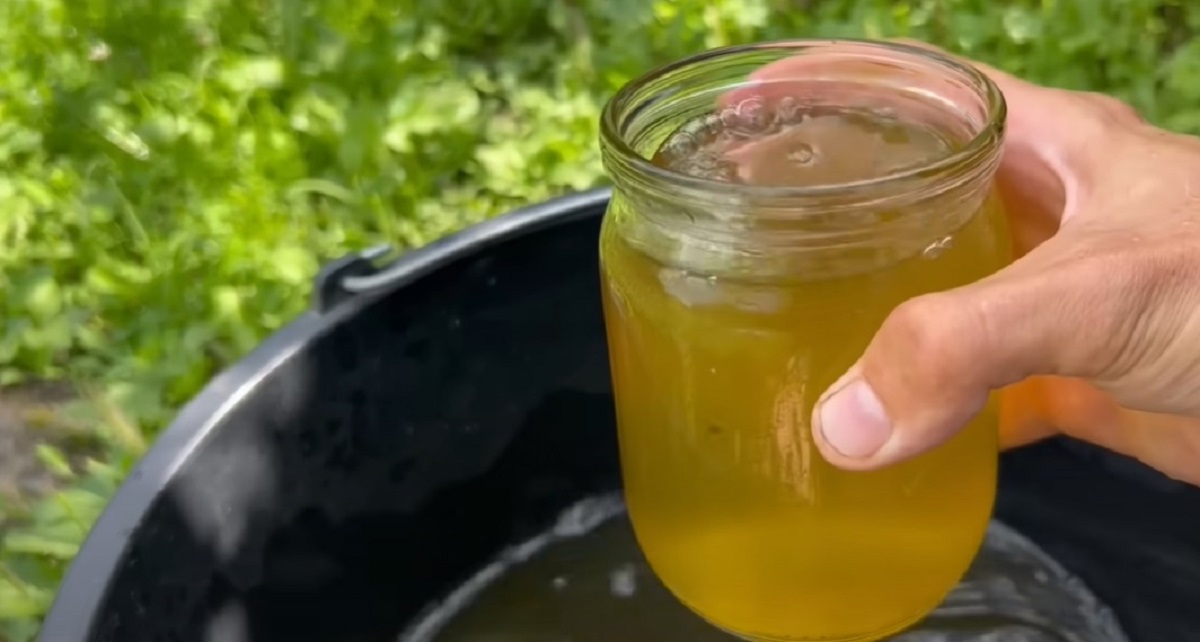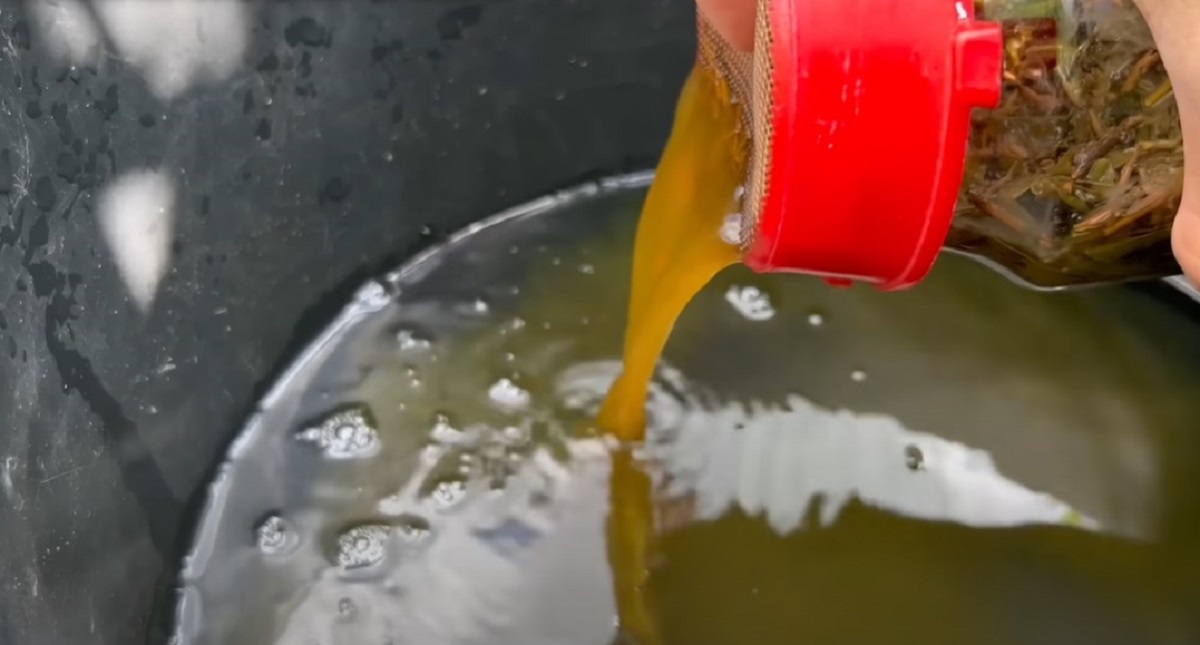 2.Filtrez ensuite l’infusion concentrée que vous avez obtenue et diluez-la avec 10 litres d’eau stagnante.