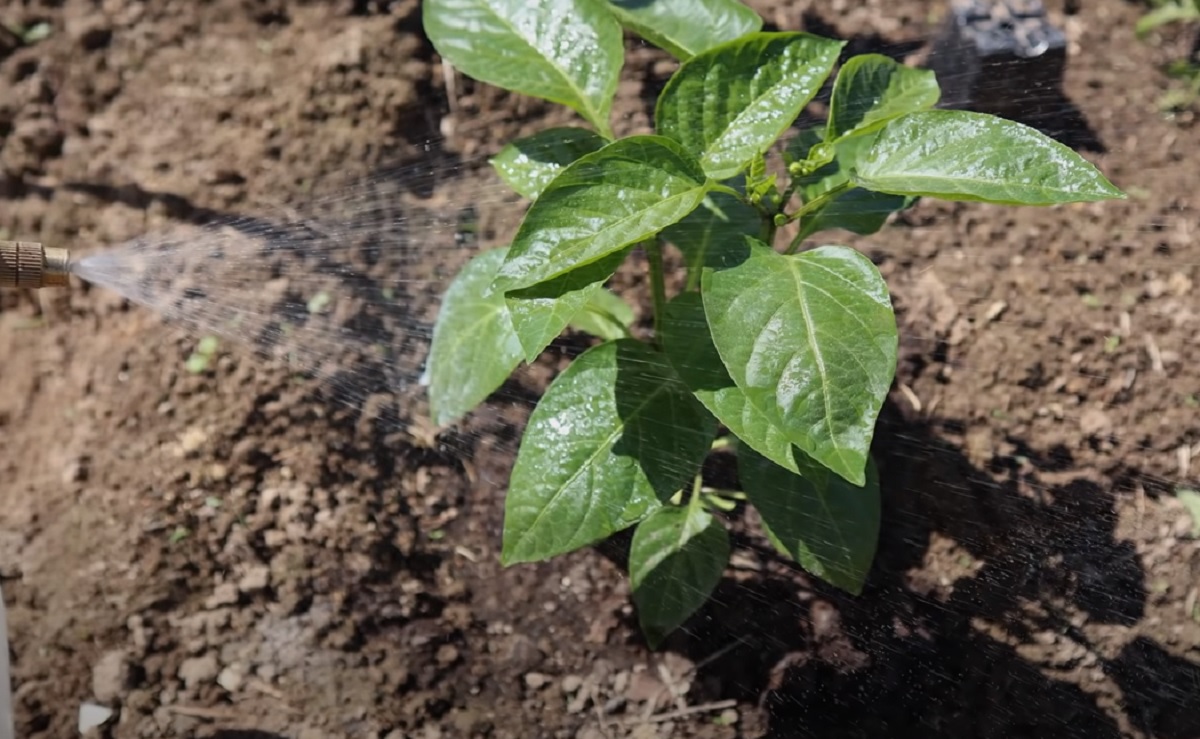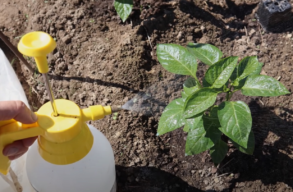 2.Vaporiser la solution obtenue sur les feuilles des poivrons. Cela doit être fait tôt le matin ou le soir.