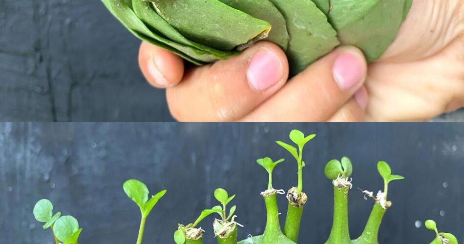 8. Après quelques semaines, vous devriez commencer à voir l’apparition de nouvelles racines au niveau de la base des feuilles. Cela signifie que la propagation est en cours et que de nouvelles plantules vont bientôt émerger.