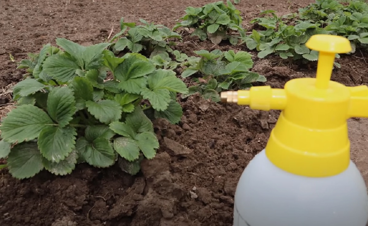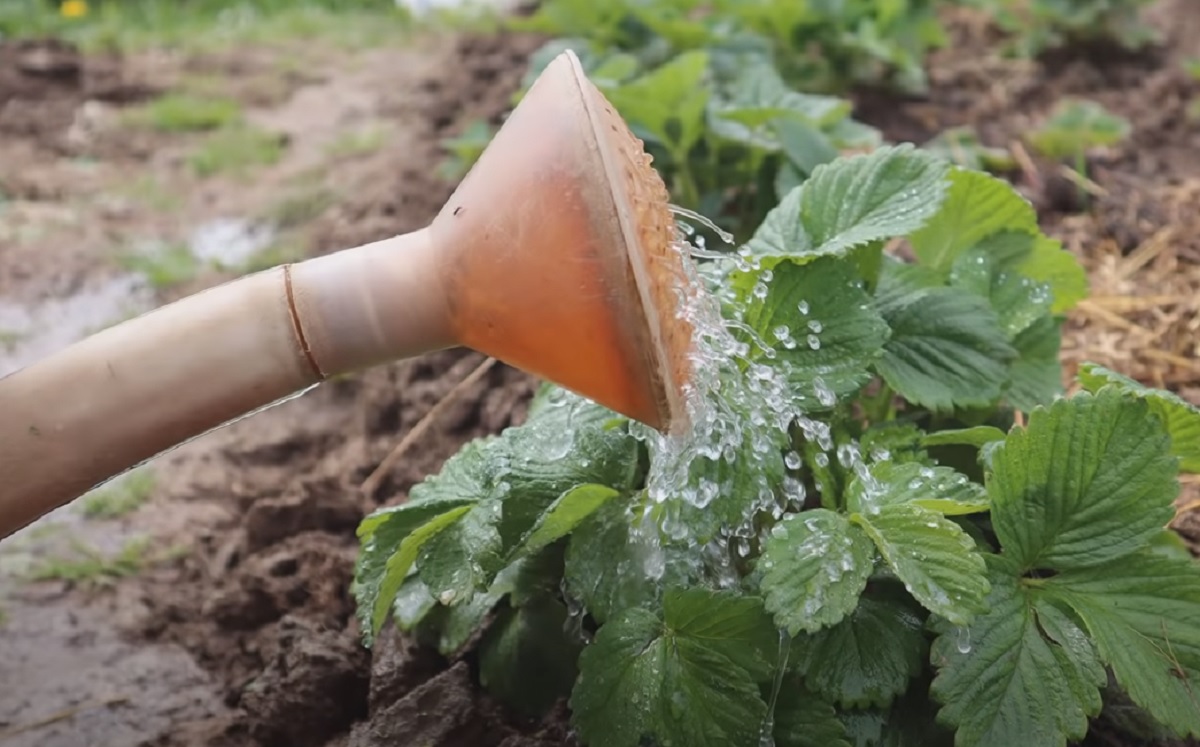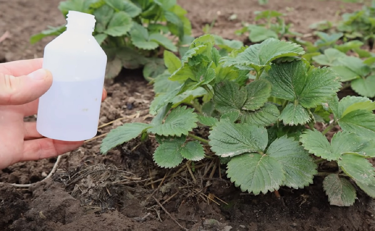 2.La deuxième fertilisation (après la fin de la période de floraison) doit être moins concentrée et ne doit pas contenir de savon. Préparez la solution et saupoudrez-en les fraises.