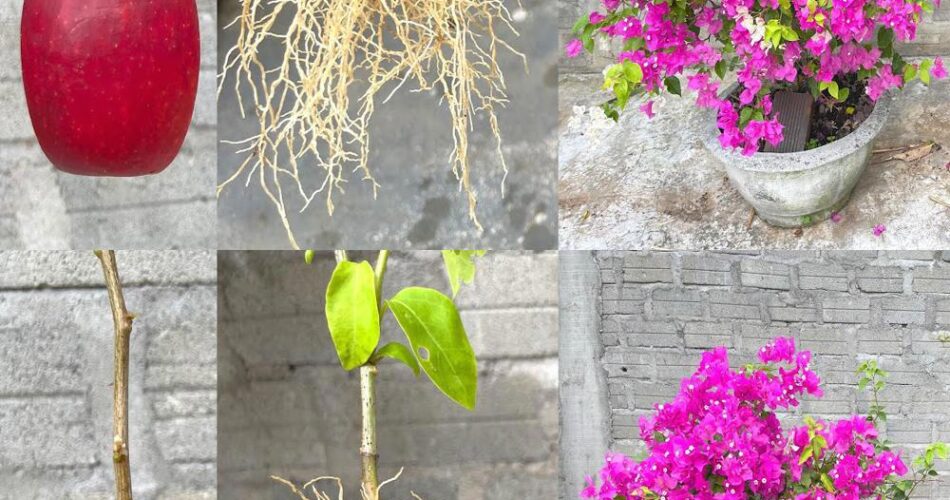 L’effet magique d’une pomme pour tailler les bougainvilliers et planter des fleurs dans un pot de sable