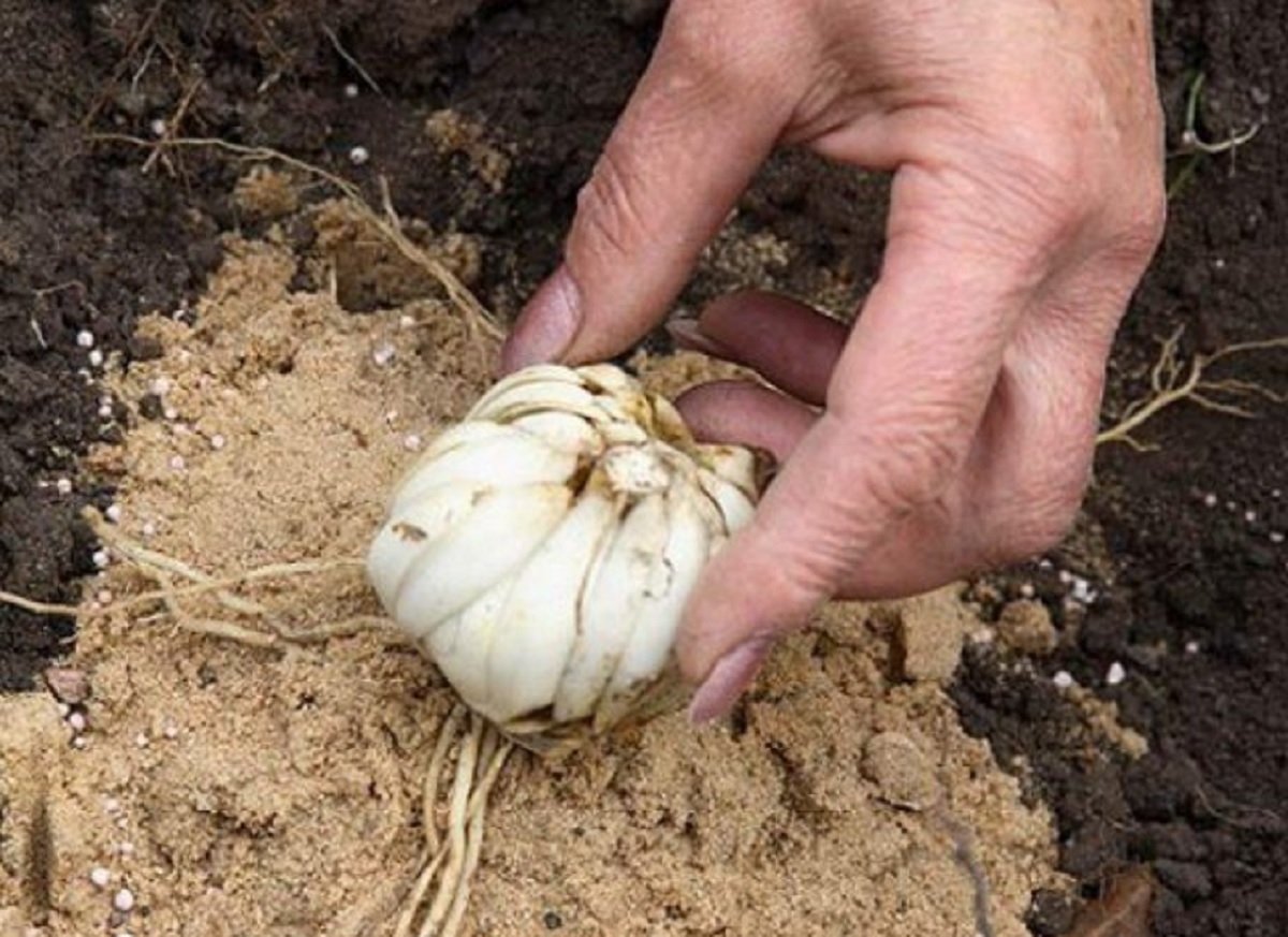 Les bulbes de lys doivent être plantés sur le « lit » de sable.
