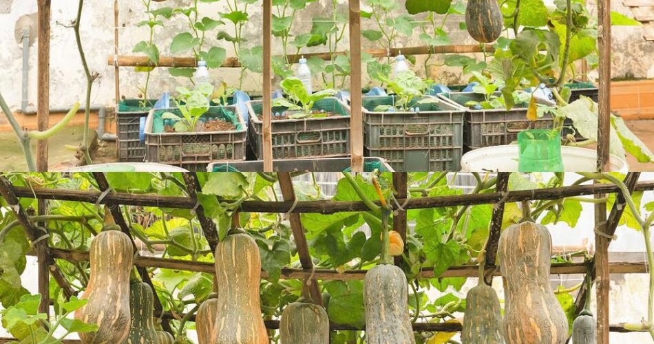 L’idée de faire pousser des citrouilles sur le treillis, pour une abondance de fruits sucrés