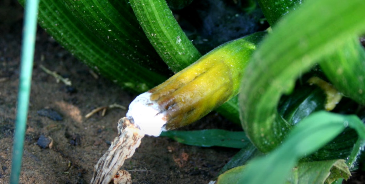 L’un d’eux est le temps froid et pluvieux : les fleurs de courgettes ne sont pas pollinisées, l’air à l’intérieur des buissons est médiocre.