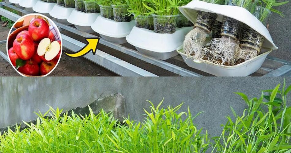 Méthode innovante de cultiver l’épinard d’eau dans des contenants en polystyrène avec des pelures de pomme, récolte abondante en vue !