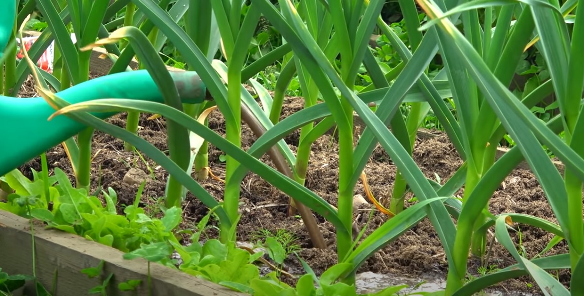 4.Ensuite, fertilisez l’ail avec, sur un sol humide, au crépuscule. Soyez généreux pendant ce processus afin que la solution fertilisante non seulement reste à la surface du sol, mais atteigne sa profondeur.