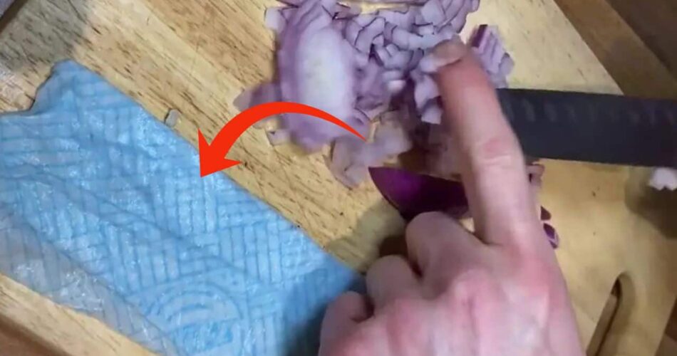 Un jeune TikToker a dévoilé l’astuce qui permet de ne pas pleurer en épluchant un oignon. Après avoir bien humidifié la serviette, placez-la soigneusement sur la planche à découper. Une fois cela fait, vous pouvez procéder à émincer l’oignon.