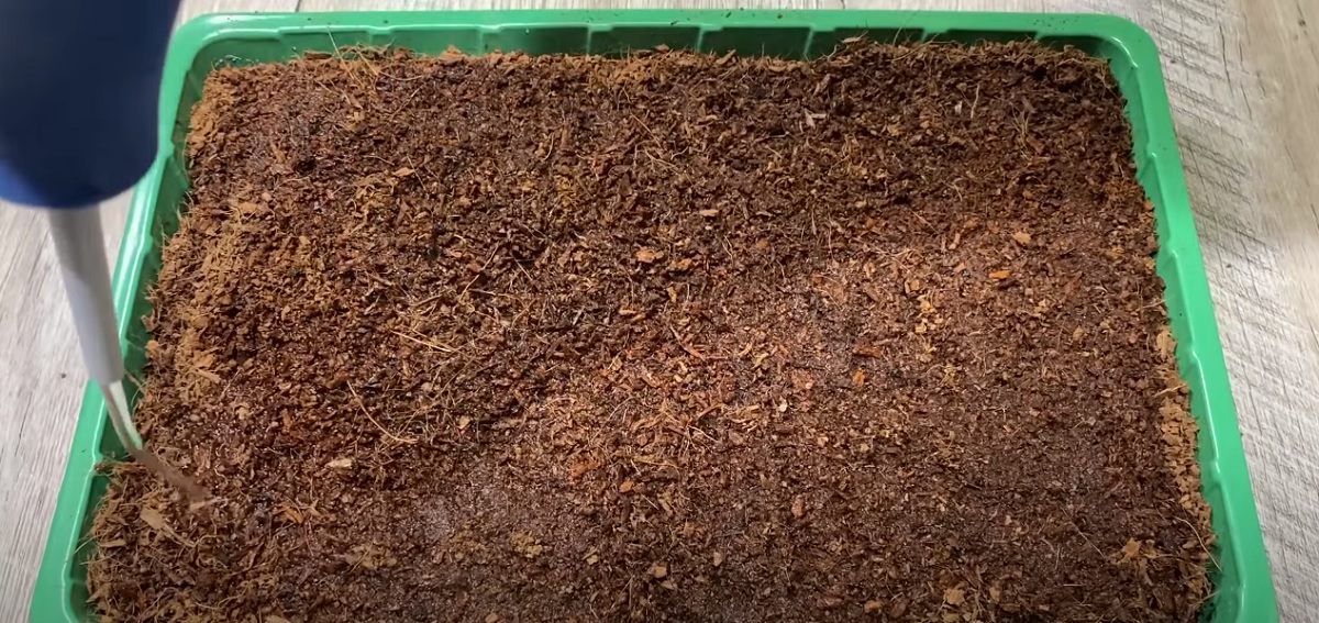 6. Arrosez le substrat en fibre de coco avec parcimonie.