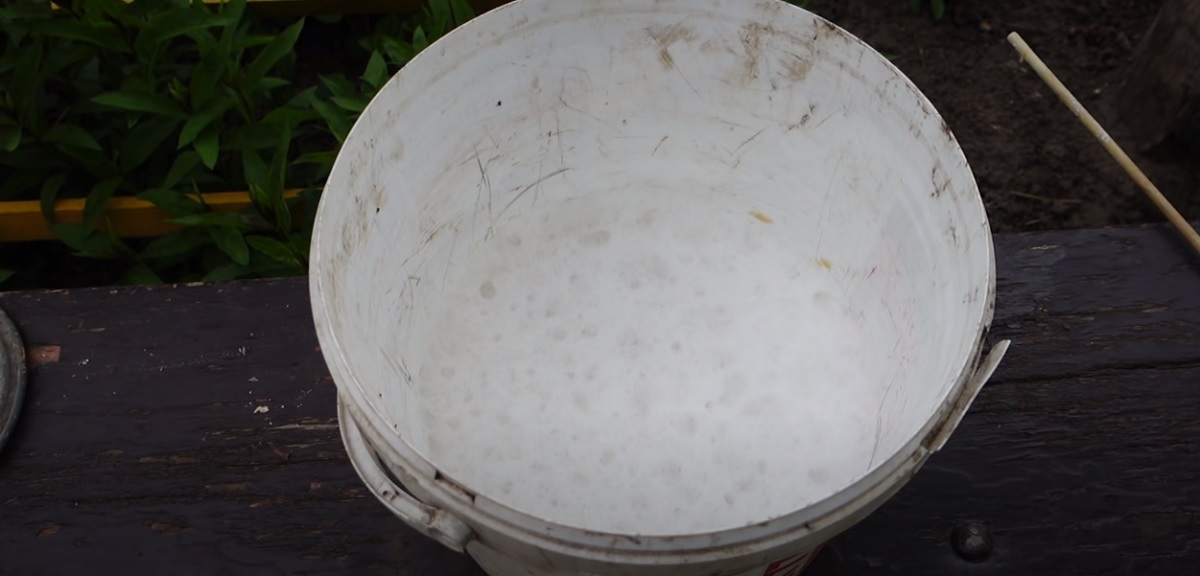 1.Râpez le savon à lessive ou coupez-le avec un couteau en fines lanières (de cette façon, il se dissoudra plus rapidement). Placez-le dans un seau ou un autre bol d’un volume minimum de 11 litres.