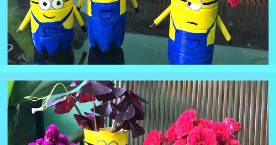 Transformer des bouteilles en plastique en pots de fleurs en forme de minion