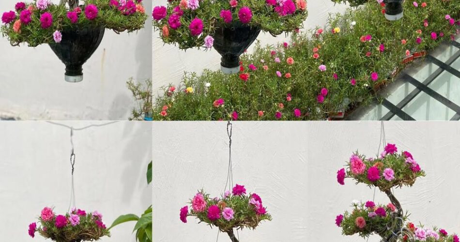 Voici un guide étape par étape pour transformer vos bouteilles en plastique en un magnifique jardin suspendu de Portulaca Grandiflora Bonsai :
