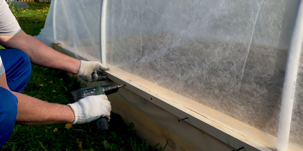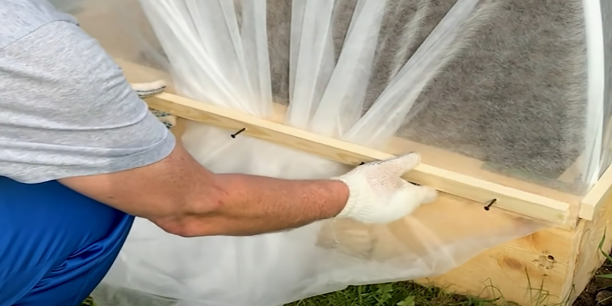 Il ne reste plus qu’à couvrir la serre. Pour un revêtement d’été, un matériau conviendra qui offre une protection fiable des cultures qui aiment la chaleur et une protection contre la rosée froide. Et pour le début du printemps et pendant l’automne, vous pouvez le recouvrir d’un film. Étirez le matériau en effectuant de petits ajustements, puis fixez-le sur le boîtier à l’aide de barres et de vis supplémentaires.