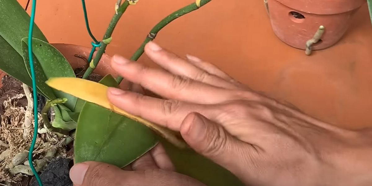 3. Étape 2 : Prenez une peau de banane et essuyez-la avec les parties intérieures et extérieures des feuilles.