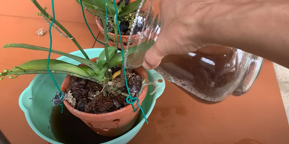 6. Pasul 4: În mod obișnuit, după aceste proceduri, mugurii florali se vor dezvolta peste 3-4 săptămâni. Acum, udați orhideele cu o soluție de coji de banană, pentru a oferi plantelor forțe să crească lăstarii dezvoltați în continuare.