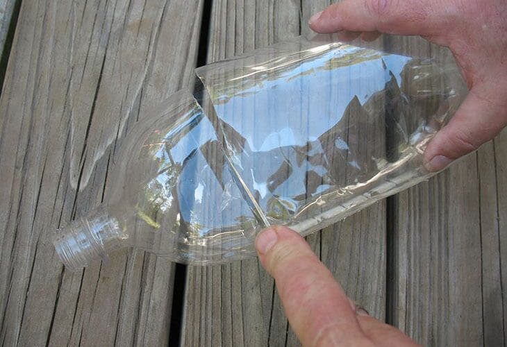 Prenez une bouteille en plastique propre et sèche et coupez-la aux 2/3 de la base à l’aide d’un couteau bien aiguisé. Les deux bases seront utilisées pour préparer un pot à arrosage automatique.